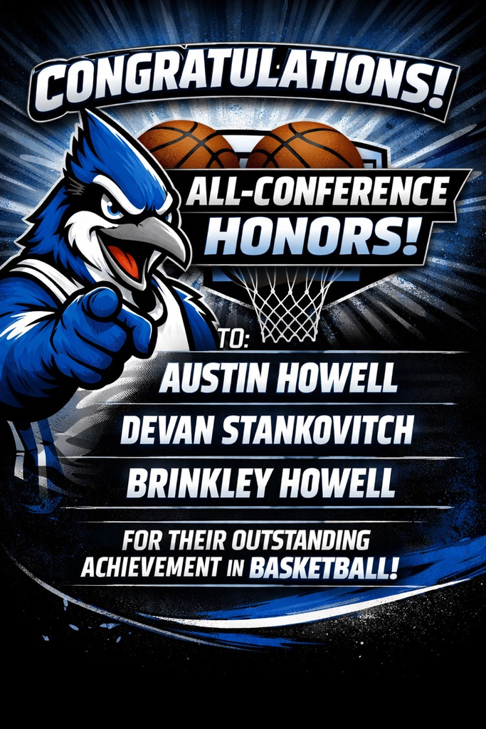 🏀 Big Spring All Conference Honors 🏀 Austin Howell- 1st Team Devan Stankovich- Honorable Mention Brinkley Howell- 1st Team