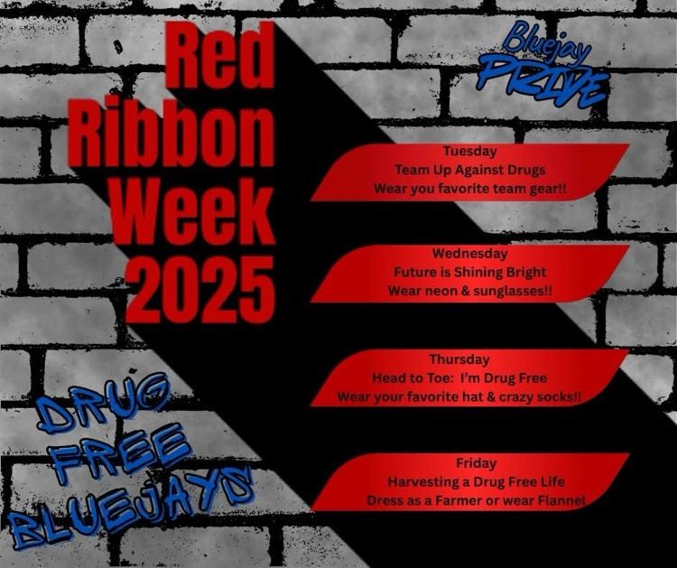 To help celebrate Red Ribbon Week, Bluejay Nation will be participating in a Spirit Week.